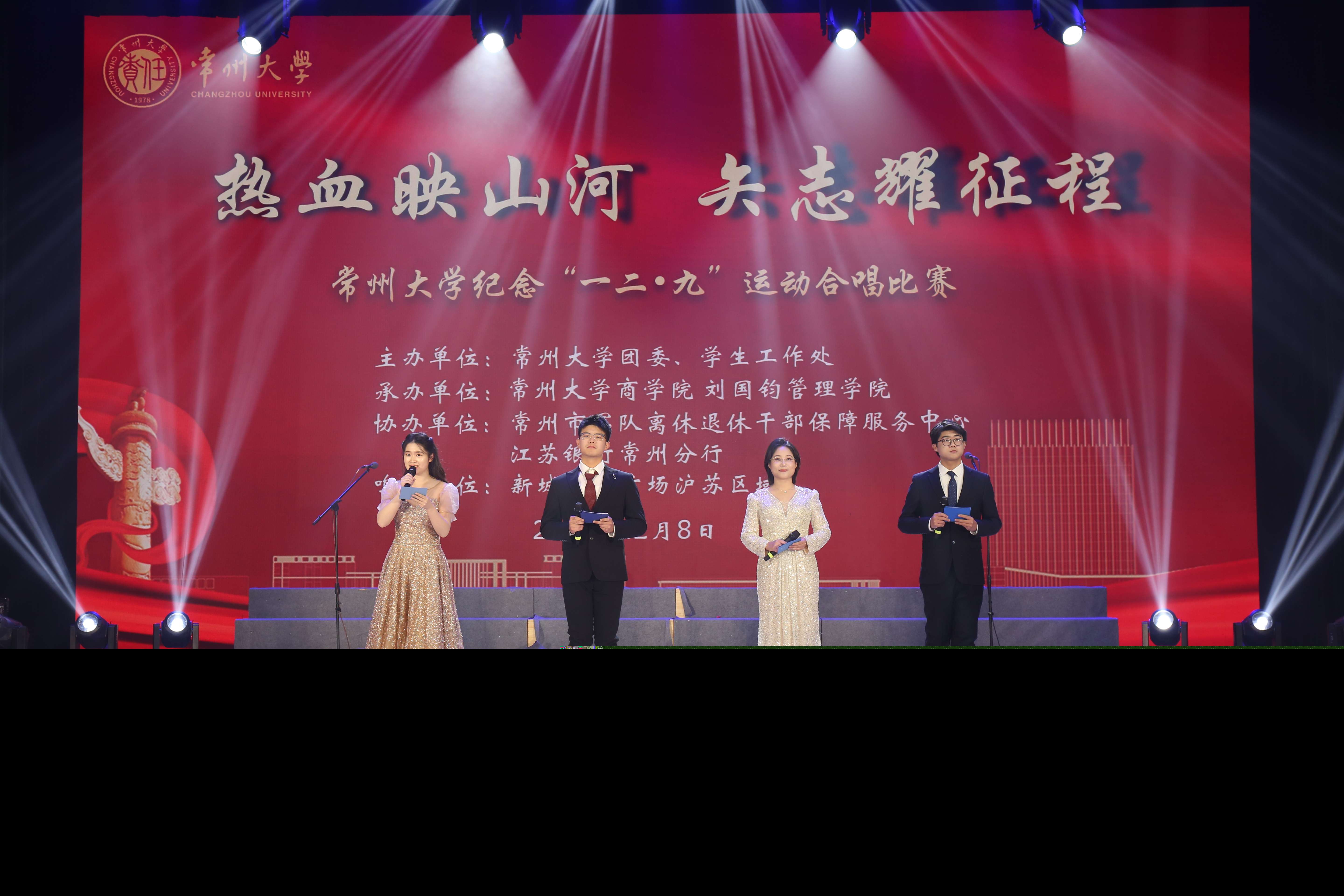 為紀(jì)念“一二·九”運(yùn)動(dòng)90周年、中國(guó)人民抗日戰(zhàn)爭(zhēng)暨世界反法西斯戰(zhàn)爭(zhēng)勝利80周年,12月8日,由常州大學(xué)團(tuán)委、學(xué)生工作處主辦,商學(xué)院 劉國(guó)鈞管理學(xué)院承辦,常州市軍隊(duì)離休退休干部保障服務(wù)中心、江蘇銀行常州分行協(xié)辦的“熱血映山河,矢志耀征程”——常州大學(xué)紀(jì)念“一二·九”運(yùn)動(dòng)合唱比賽決賽在西太湖校區(qū)立藝樓大禮堂舉行。常州市軍隊(duì)離休退休干部保障服務(wù)中心黨委書(shū)記、主任沈春靜,副書(shū)記、副主任金燕,紀(jì)委書(shū)記張悅,新城商管滬蘇區(qū)域公司行政人事副總監(jiān)王天聞出席活動(dòng),校關(guān)工委、校團(tuán)委、黨委學(xué)生工作部、商學(xué)院相關(guān)負(fù)責(zé)人,以及部分學(xué)院的黨委副書(shū)記、團(tuán)委書(shū)記、團(tuán)工作負(fù)責(zé)人和師生代表共同參與決賽活動(dòng)。
